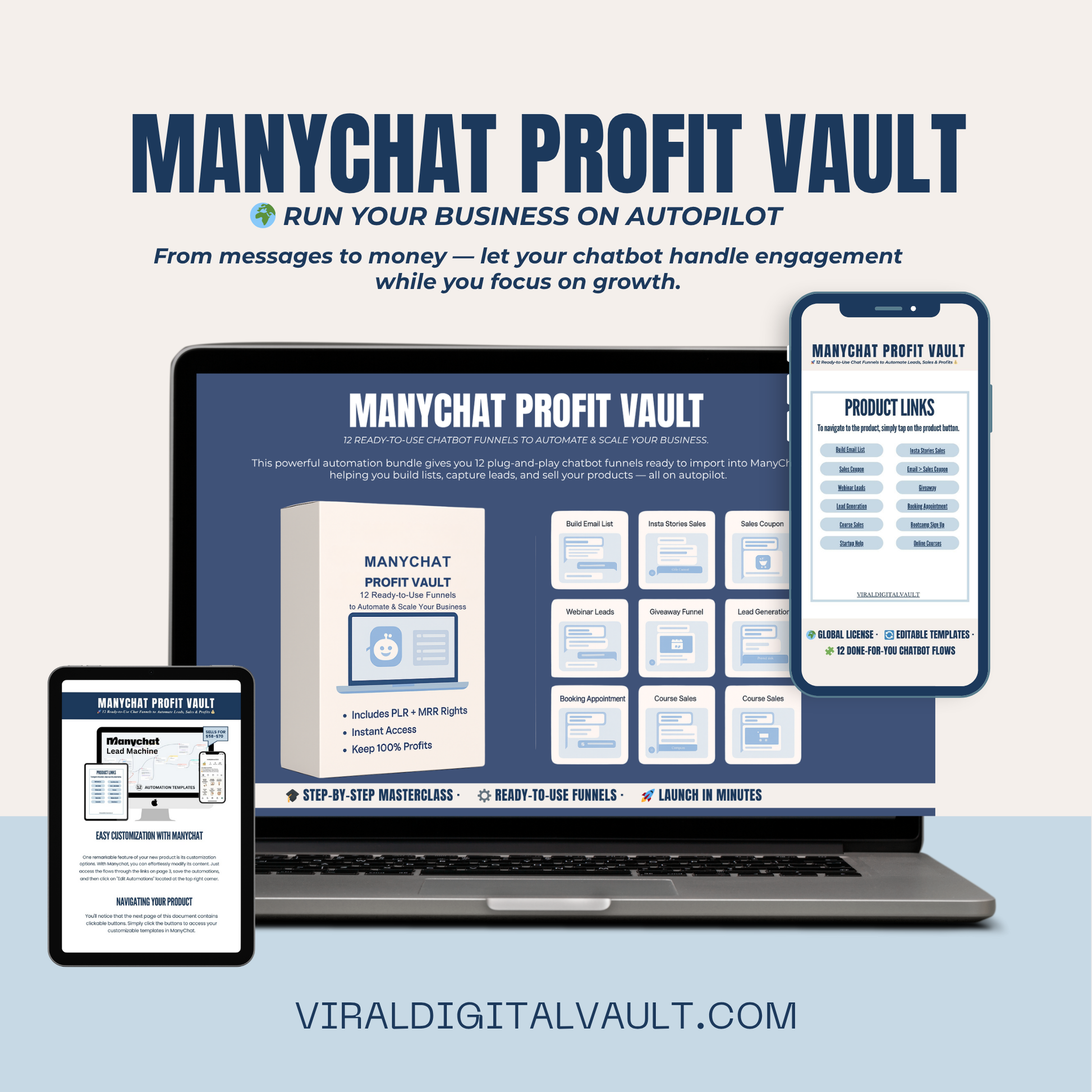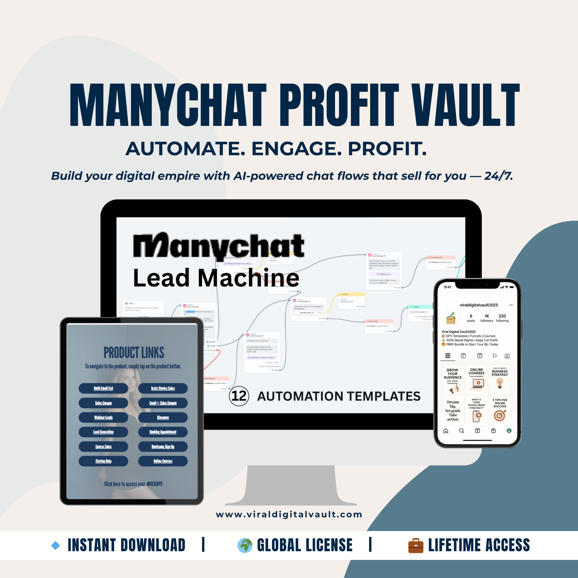 ManyChat Profit Vault – 12 Ready-to-Use Chat Automation Flows to Generate Leads, Sales & Profits (PLR + MRR License)
